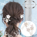 花やリーフを連ねた、淡い乳白色系クリスタルやゴールドが美しい小枝ヘアピン。