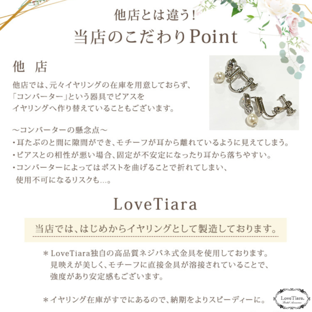 ネジバネ金具はLoveTiara独自の高品質ネジバネ式金具を使用しています。