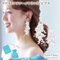 白いお花の周りにビーズやクリスタルを配した、繊細で愛らしい小枝アクセサリー。