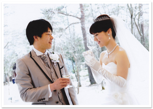 4月の挙式とのことですが、白く光る背景はまるで雪景色の様にも見えます。